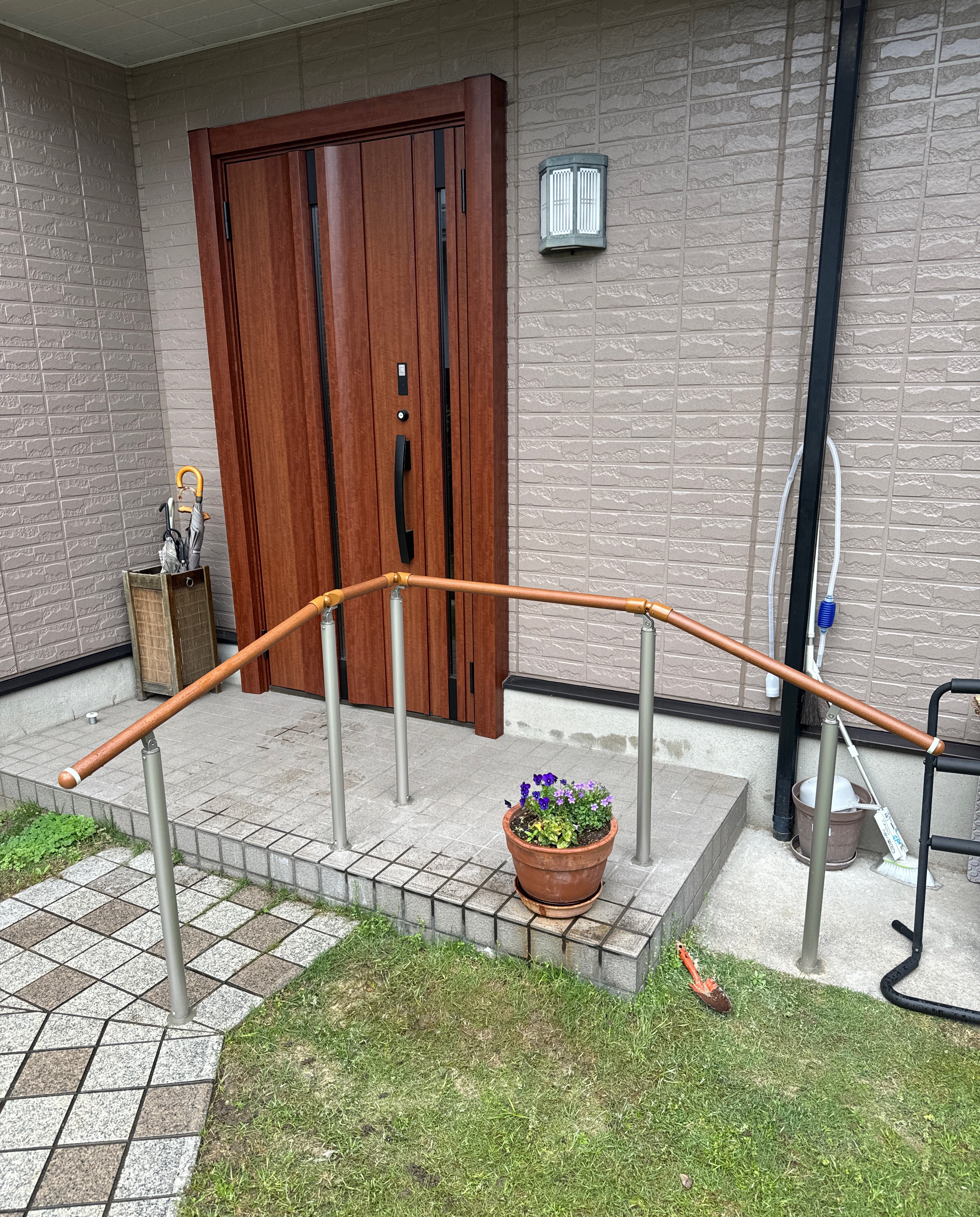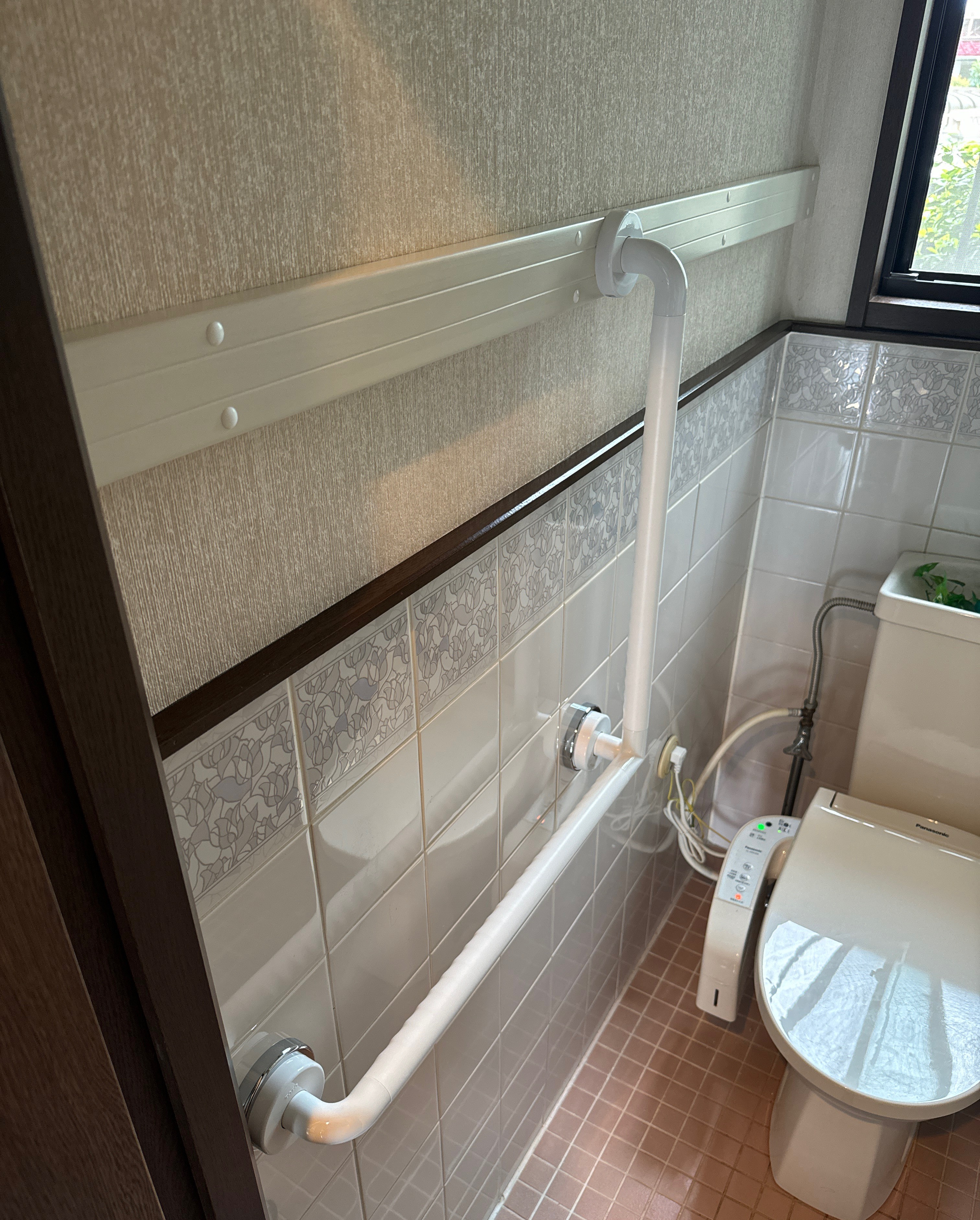 春日井市 手摺新設工事 2025.03.26 介護福祉用の介護手摺を設置させていただきました。お施主様、ケアマネジャー様と共に現地でお打ち合わせの上お施主様にとって最適な箇所に必要相当の手摺を設けさせていただきました。介護申請に必要な書類類もご用意させていただきました。before after