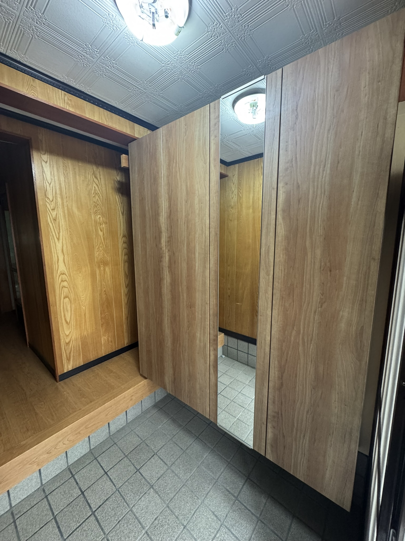 玄関引戸のカバー工法、玄関収納取替を施工させていただきました。