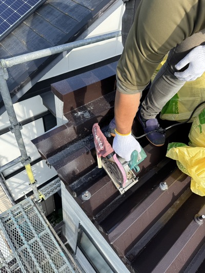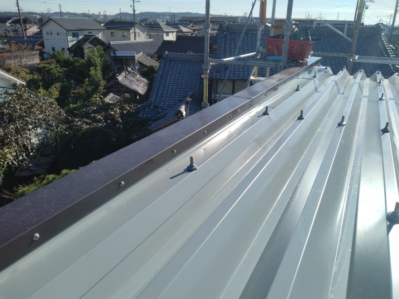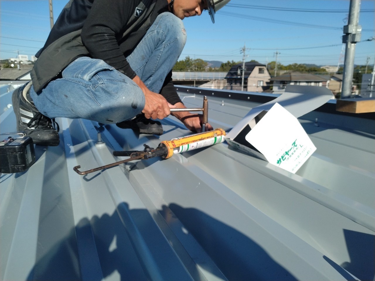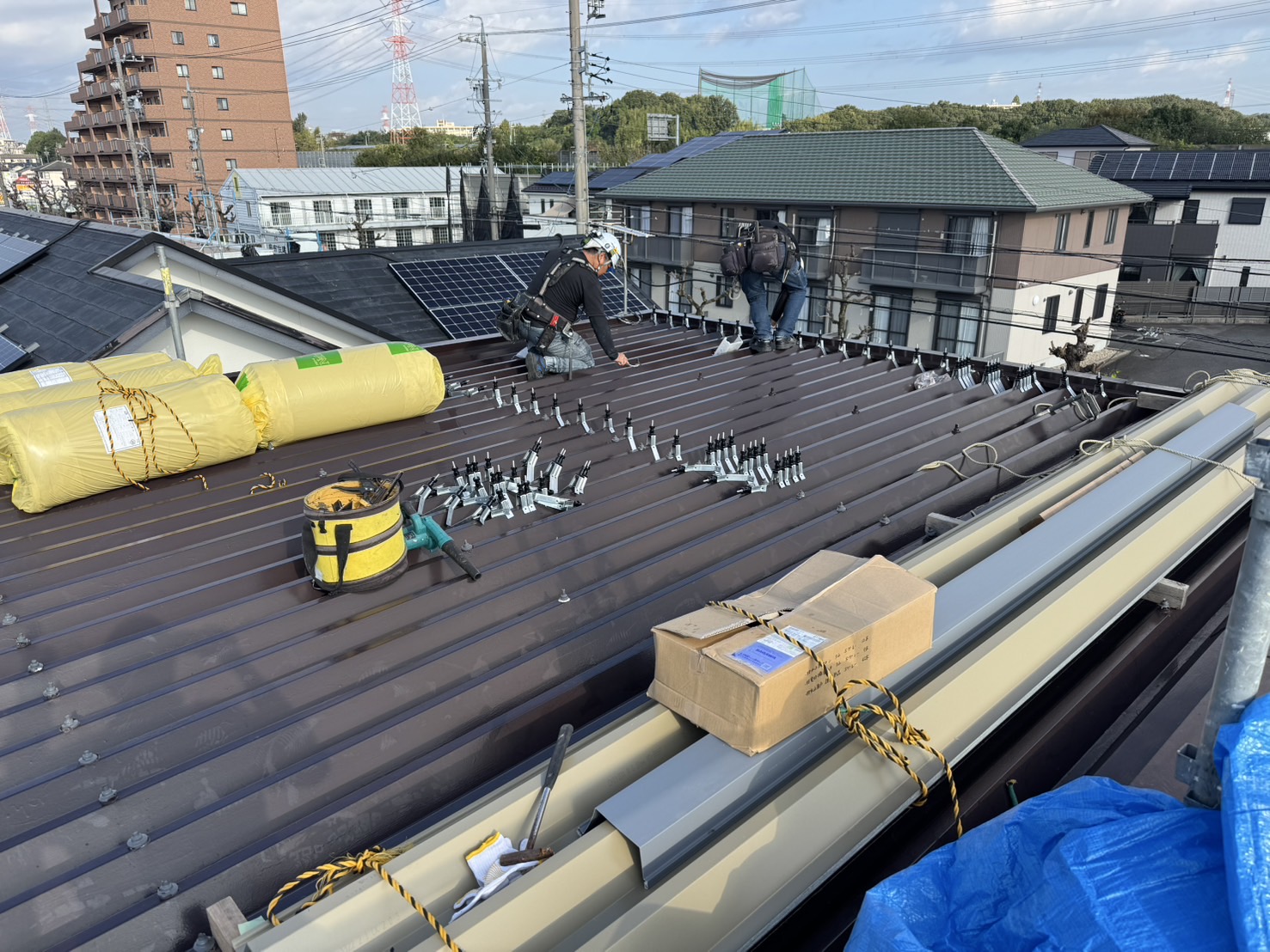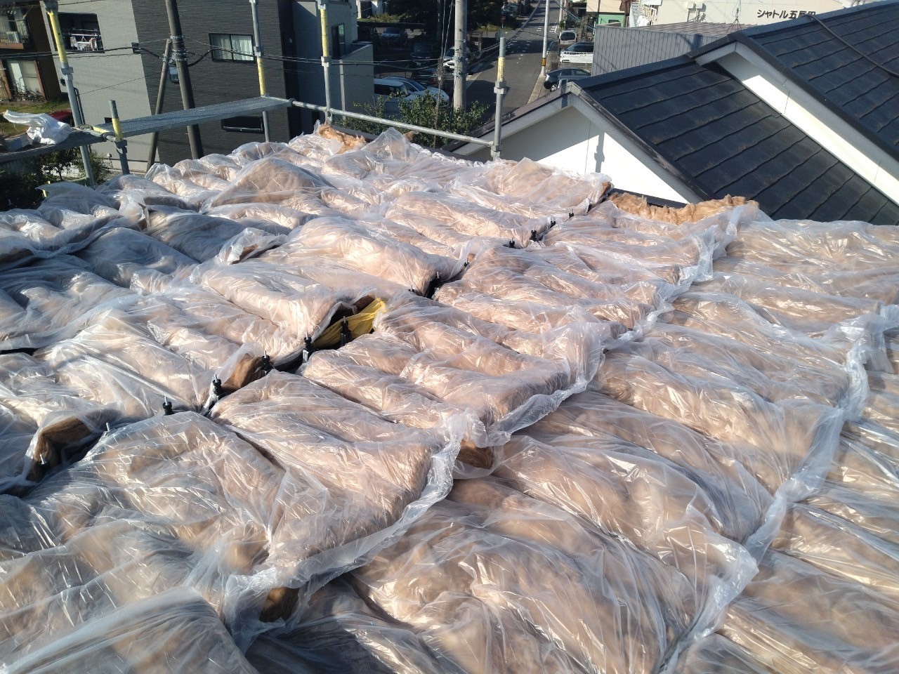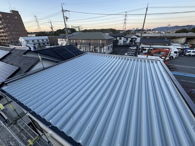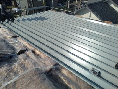 春日井市 屋根断熱工事 2025.04.03 建物の断熱性能向上のお問い合わせをいただき、特に夏場の二階におけるエアコンの効きが悪く部屋内の天井材が暑くなるくらいであったため、様々なご提案をさせていただき、最終敵に営業しながら工事可能な範囲でできる工事として、外部側より断熱性能を補強する工事を施工させていただきました。during after