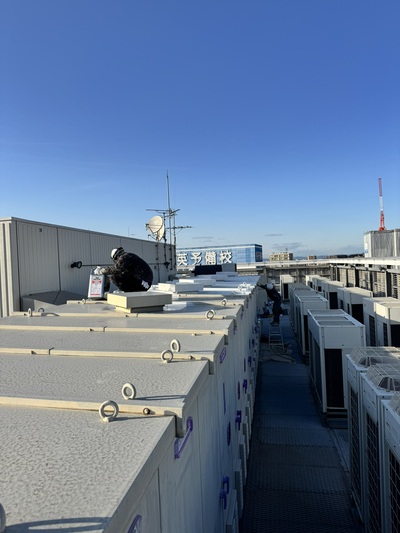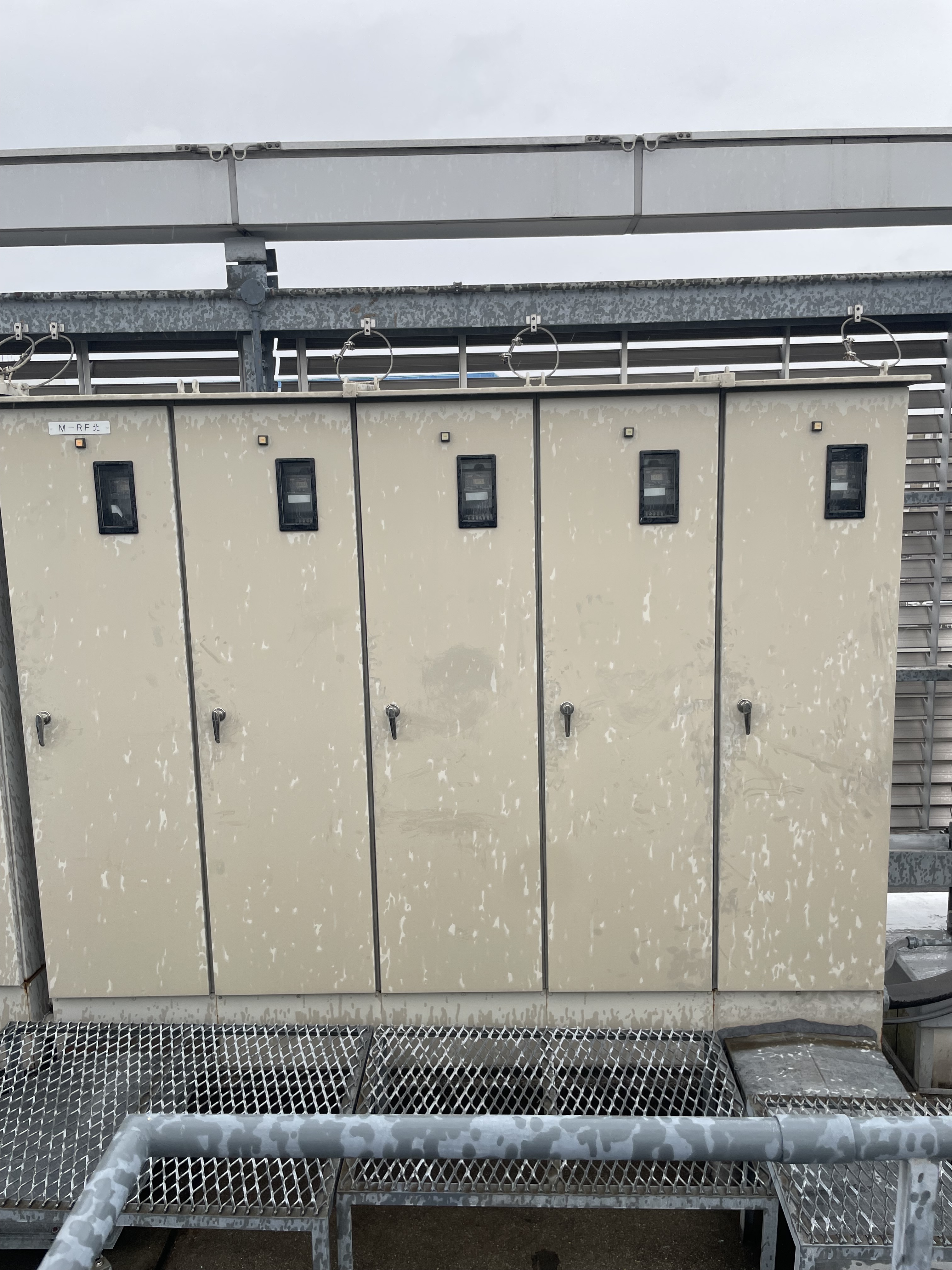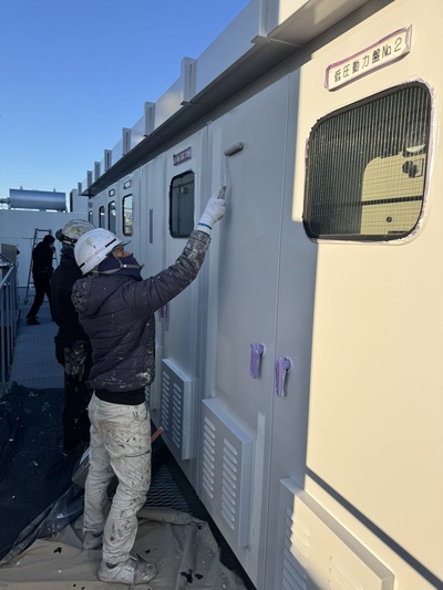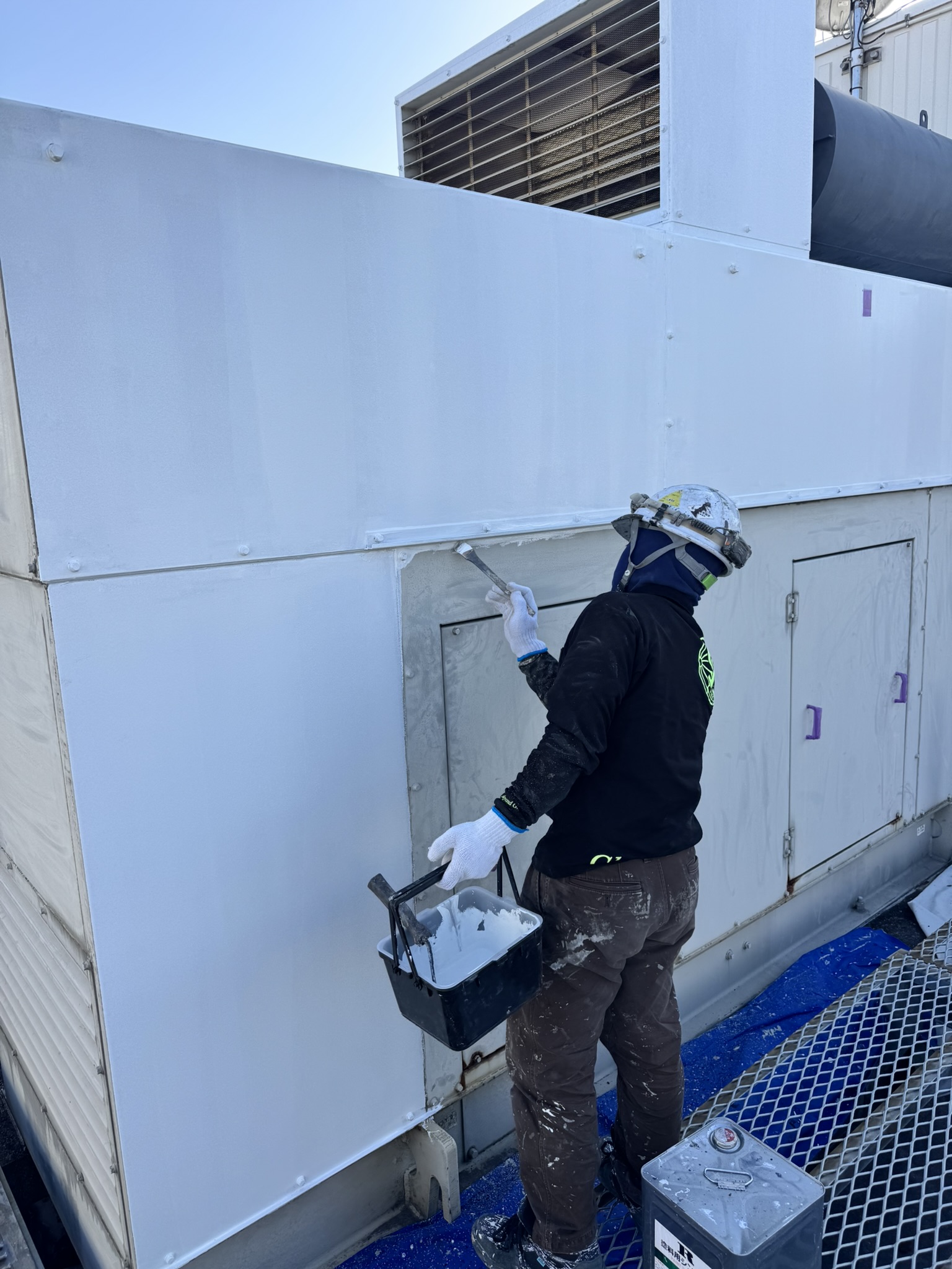 千種区 ビル屋上キュービクル及び鉄部塗装工事 2025.04.03 鉄部使用塗材:ハイパーユメロックルーフ(遮熱塗材)002 シャビーシックグレイ焼却設備塗材:オキツモNo.983・No.605駐輪場ライン塗材:水性ロックラインビル屋上に設置されたスチール盤やキュービクル装置等の塗装を施工させていただきました。テナント様にご迷惑をおかけしないよう臭気に配慮しながら、土日祝日をメインに施工させていただきました。また、駐輪場のラインも施工させていただきました。before during after