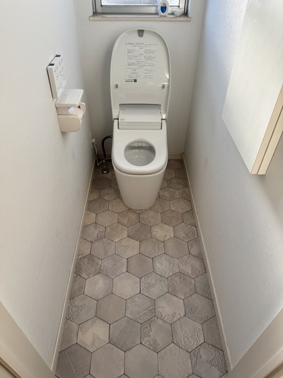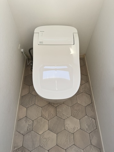 一宮市 トイレ取替 2025.04.03 トイレ:パナソニック アラウーノS160 タイプ1既設トイレが、清掃等により表面剥離を起こしてしまったため新築時からの経年劣化(15年程度)も含めて床材の貼替とトイレの取替をご提案させていただきました。after