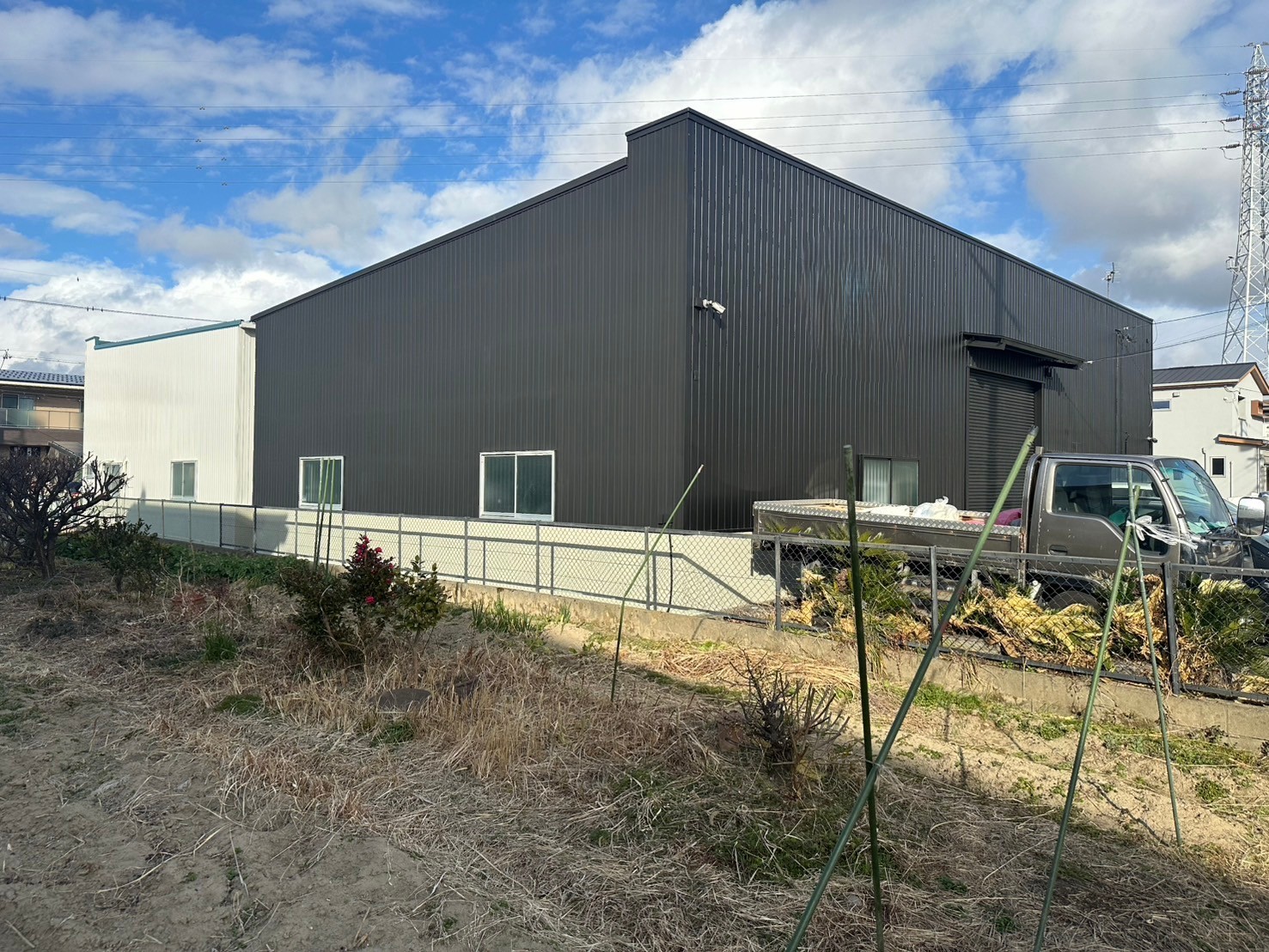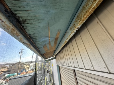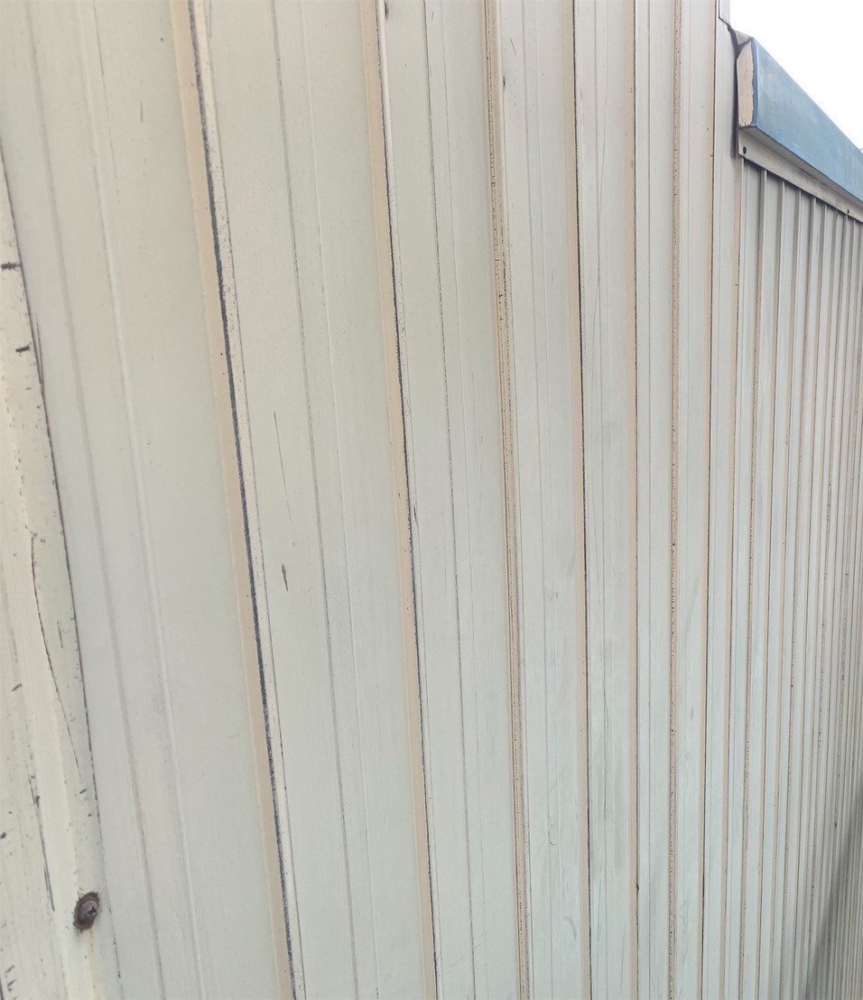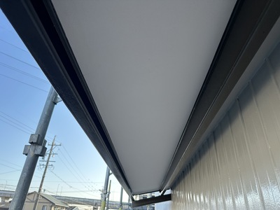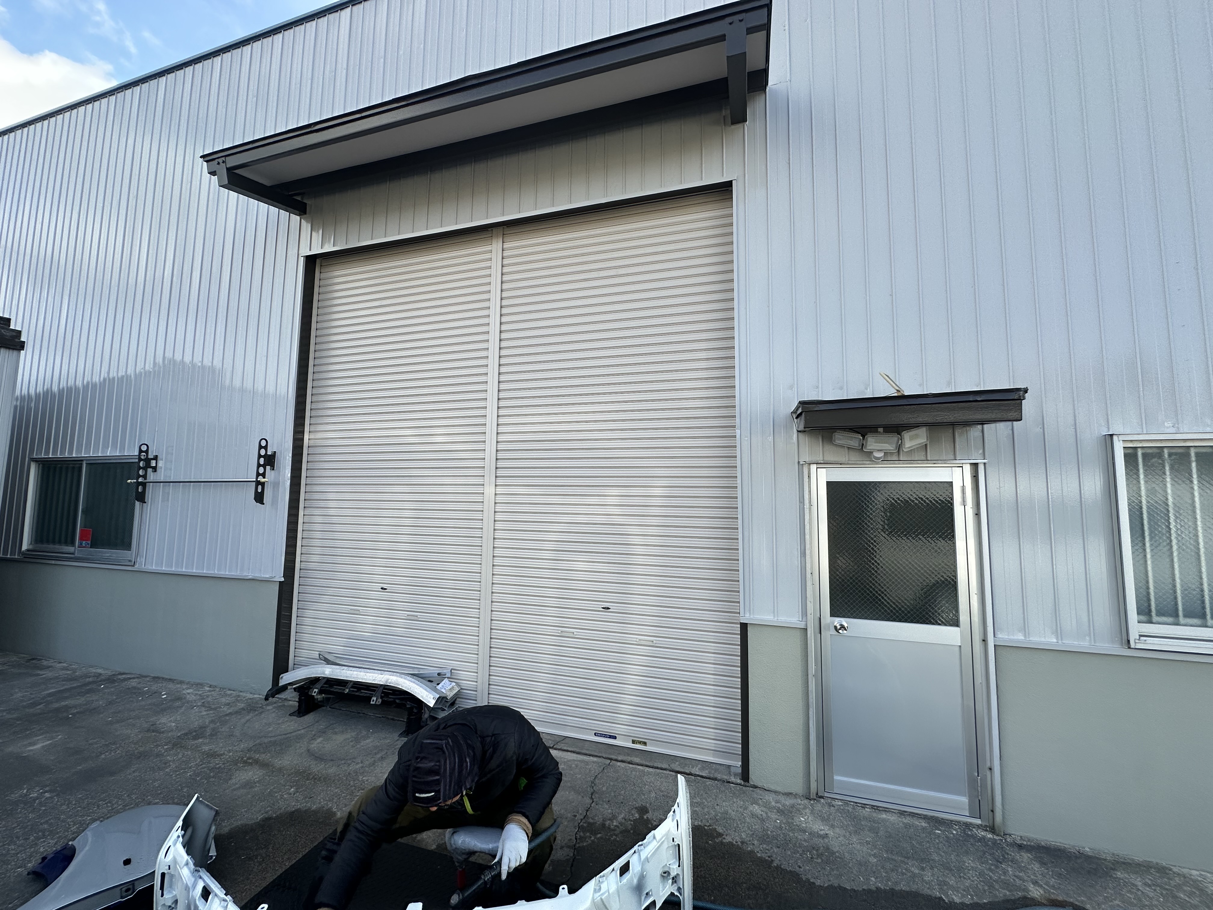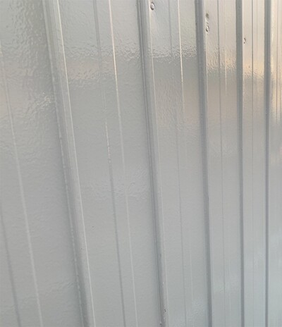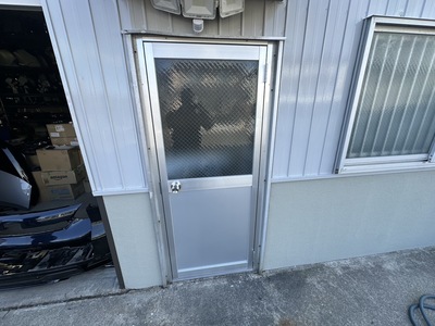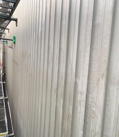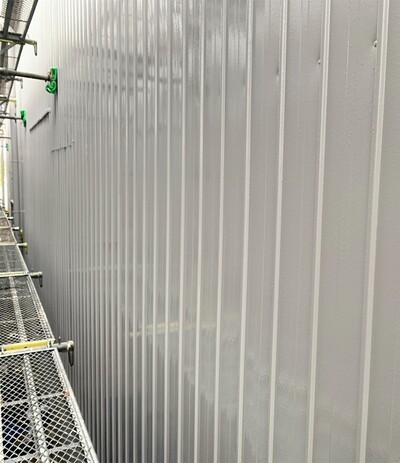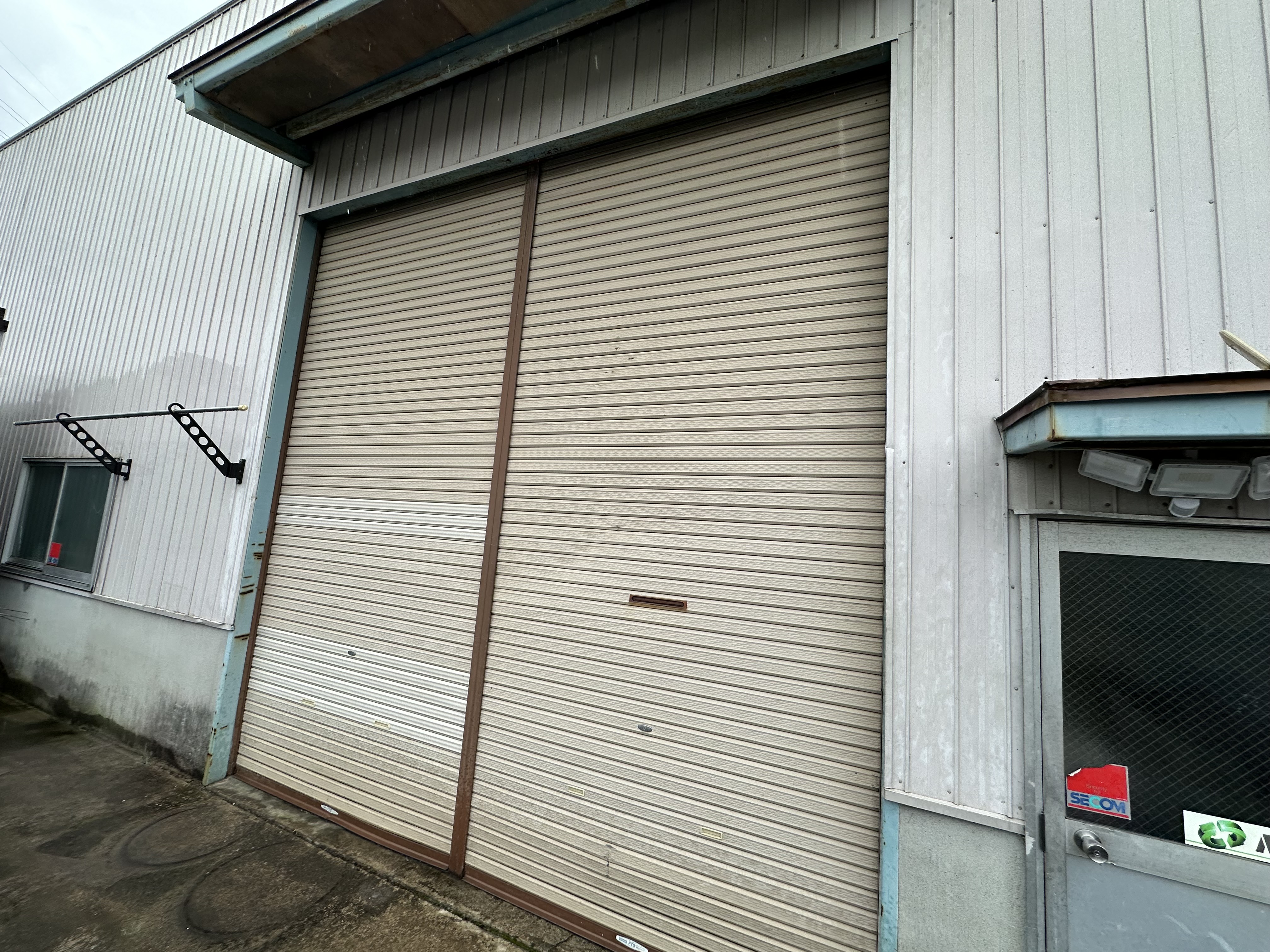 大治町 貸し倉庫外装修繕 2025.04.03 屋根:ハイパーユメロックルーフ外壁:ハイパーユメロック貸し倉庫の外装修繕を施工させていただきました。屋根・外壁の塗装、出入口ドアカバー工法、出入口シャッター取替、庇軒天の貼替、窓ガラス取替などbefore after