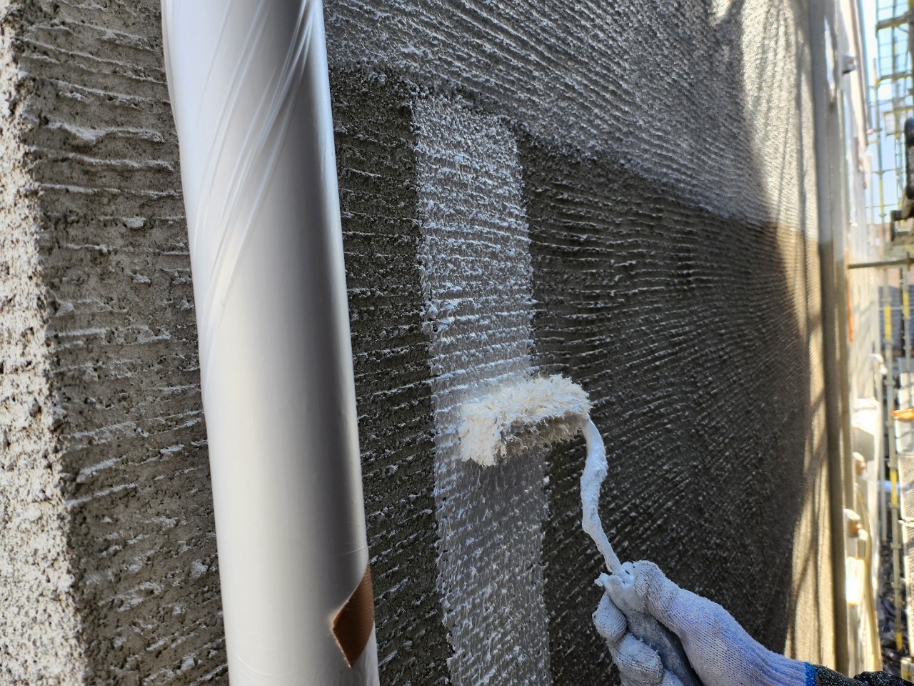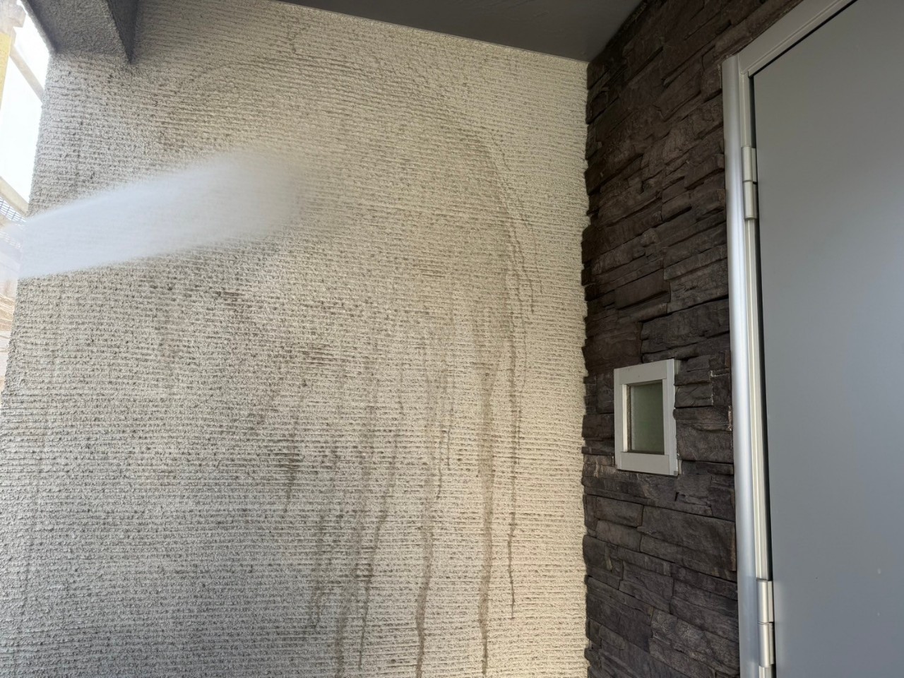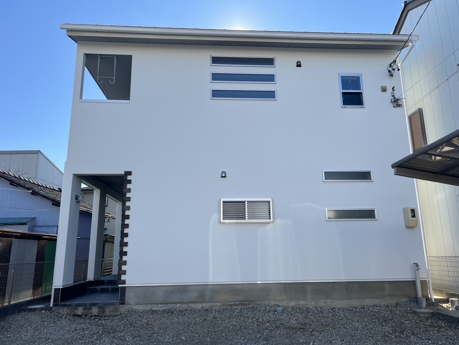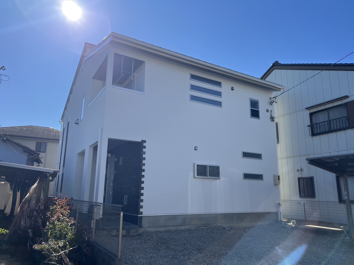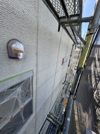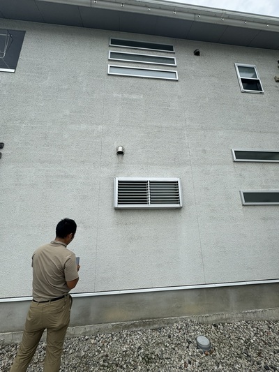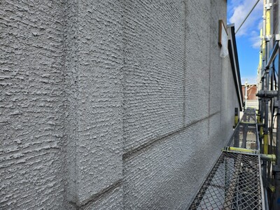 一宮市 屋根・外壁塗装 2025.04.09 外壁:ジョリパットフレッシュ∞ T1000新築時から15年ほど経過した外装に関するご相談を受けました。新築引き渡し当初から、外壁にクラックが多々あり建元様に、「クラックさえ気にならなければ、生涯塗替えは必要ない」とご説明を受け、15年が経過し、本当に大丈夫なのかとご相談を受けました。ジョリパット本体は、ひび割れ追従に強い性質がありますが、もちろん限界はありますし、下地の状態にかなり影響されます。生涯メンテナンスフリーはありえなく、必ず塗替えは必要になりますとご説明させていただきました。下地サイディングの形状が全てわかるほどクラックが全面に入っておりお施主様には、当社最善の力を尽くしますが、下地が動くものについては追従できる範囲でのカバーしかできない旨をお伝えさせていただき、補修工事から塗装工事まで施工させていただきました。施工後、光の加減で若干のクラック補修跡は分かりますが、補修とぼかし作業をに力を入れましたのでほとんど分かりづらい状態には、なったかと思います。before during after