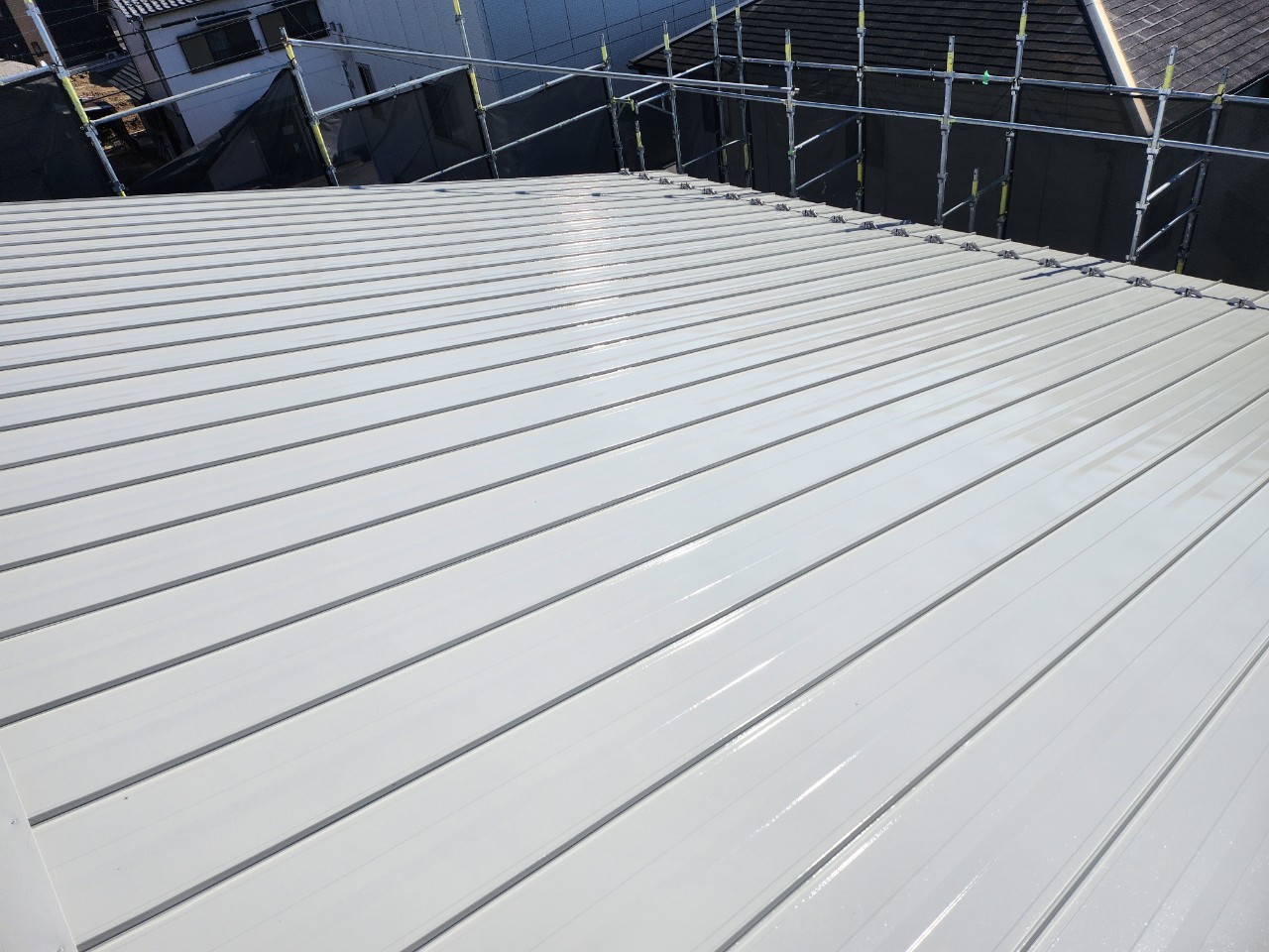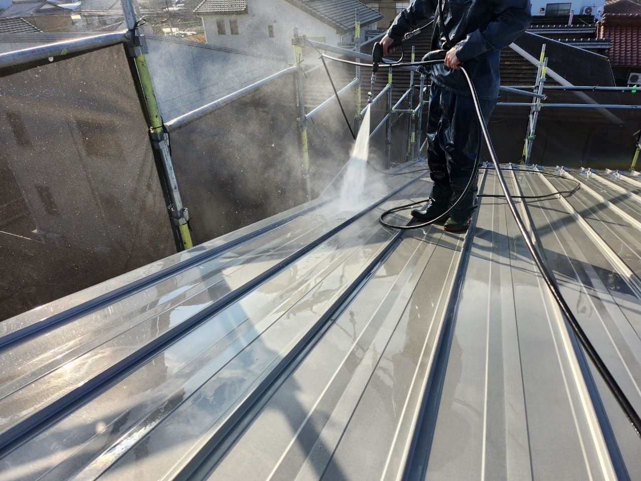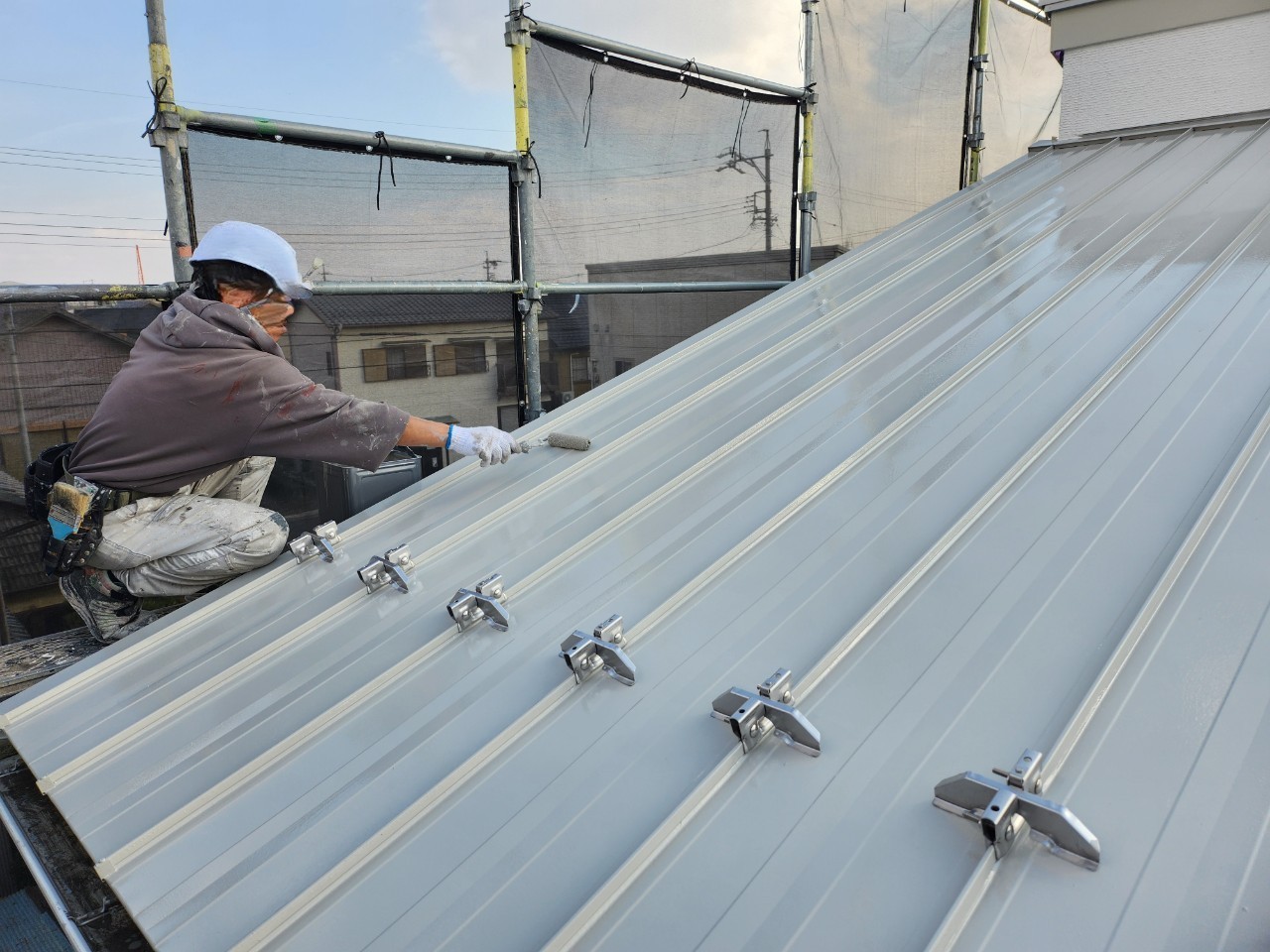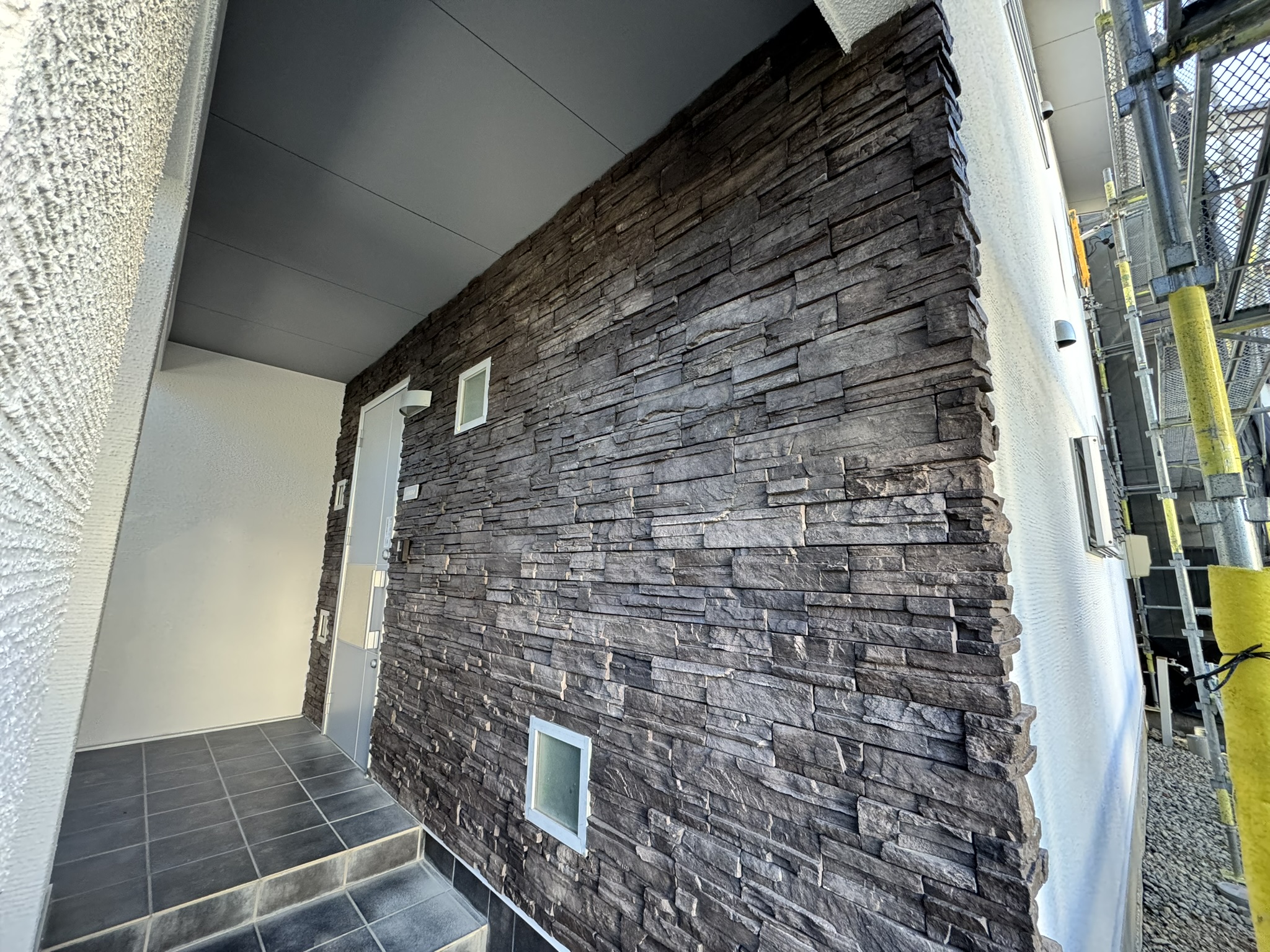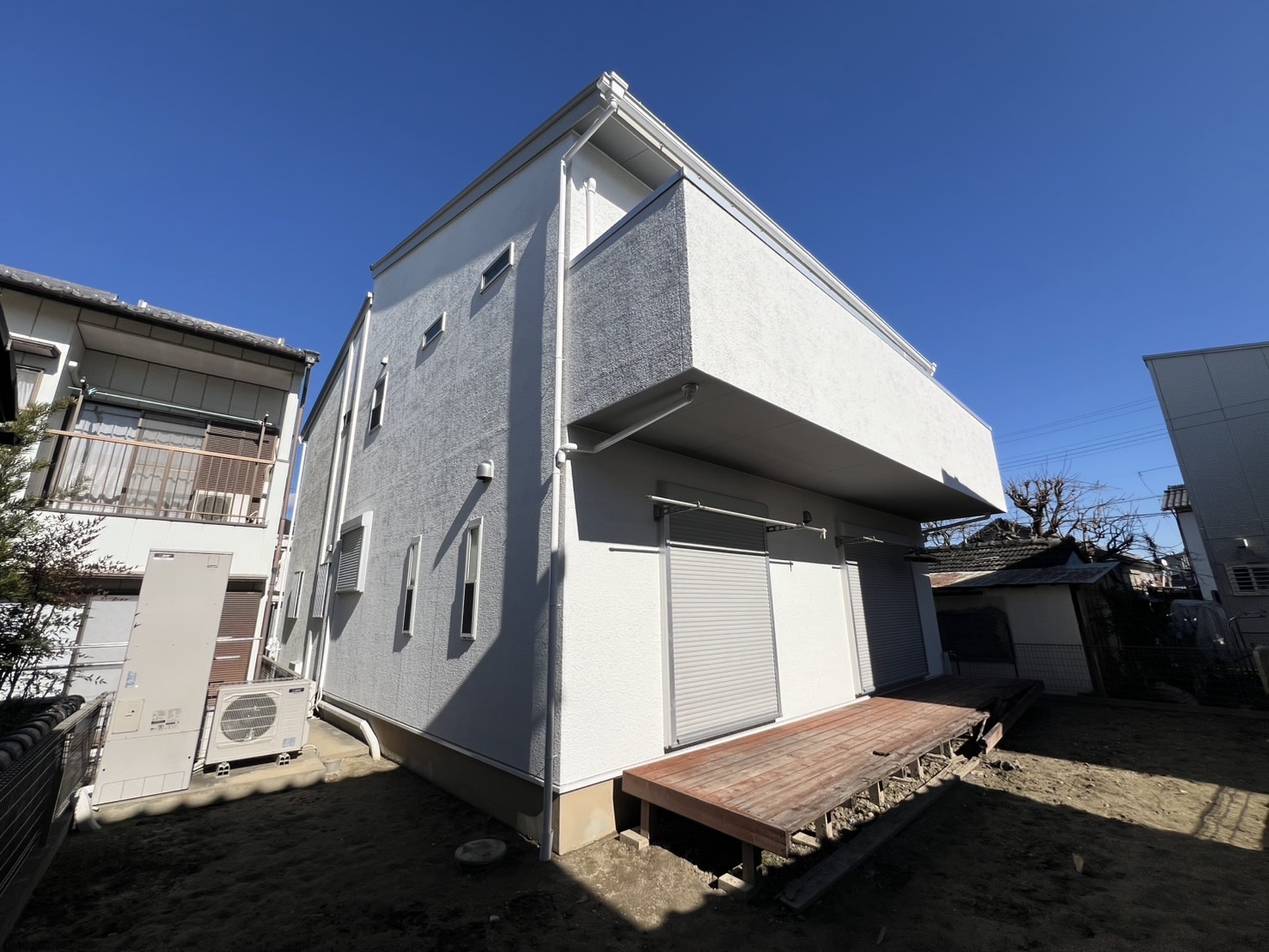 一宮市 屋根・外壁塗装 2025.04.09 外壁:ジョリパットフレッシュ∞ T1000新築時から15年ほど経過した外装に関するご相談を受けました。新築引き渡し当初から、外壁にクラックが多々あり建元様に、「クラックさえ気にならなければ、生涯塗替えは必要ない」とご説明を受け、15年が経過し、本当に大丈夫なのかとご相談を受けました。ジョリパット本体は、ひび割れ追従に強い性質がありますが、もちろん限界はありますし、下地の状態にかなり影響されます。生涯メンテナンスフリーはありえなく、必ず塗替えは必要になりますとご説明させていただきました。下地サイディングの形状が全てわかるほどクラックが全面に入っておりお施主様には、当社最善の力を尽くしますが、下地が動くものについては追従できる範囲でのカバーしかできない旨をお伝えさせていただき、補修工事から塗装工事まで施工させていただきました。施工後、光の加減で若干のクラック補修跡は分かりますが、補修とぼかし作業をに力を入れましたのでほとんど分かりづらい状態には、なったかと思います。before during after