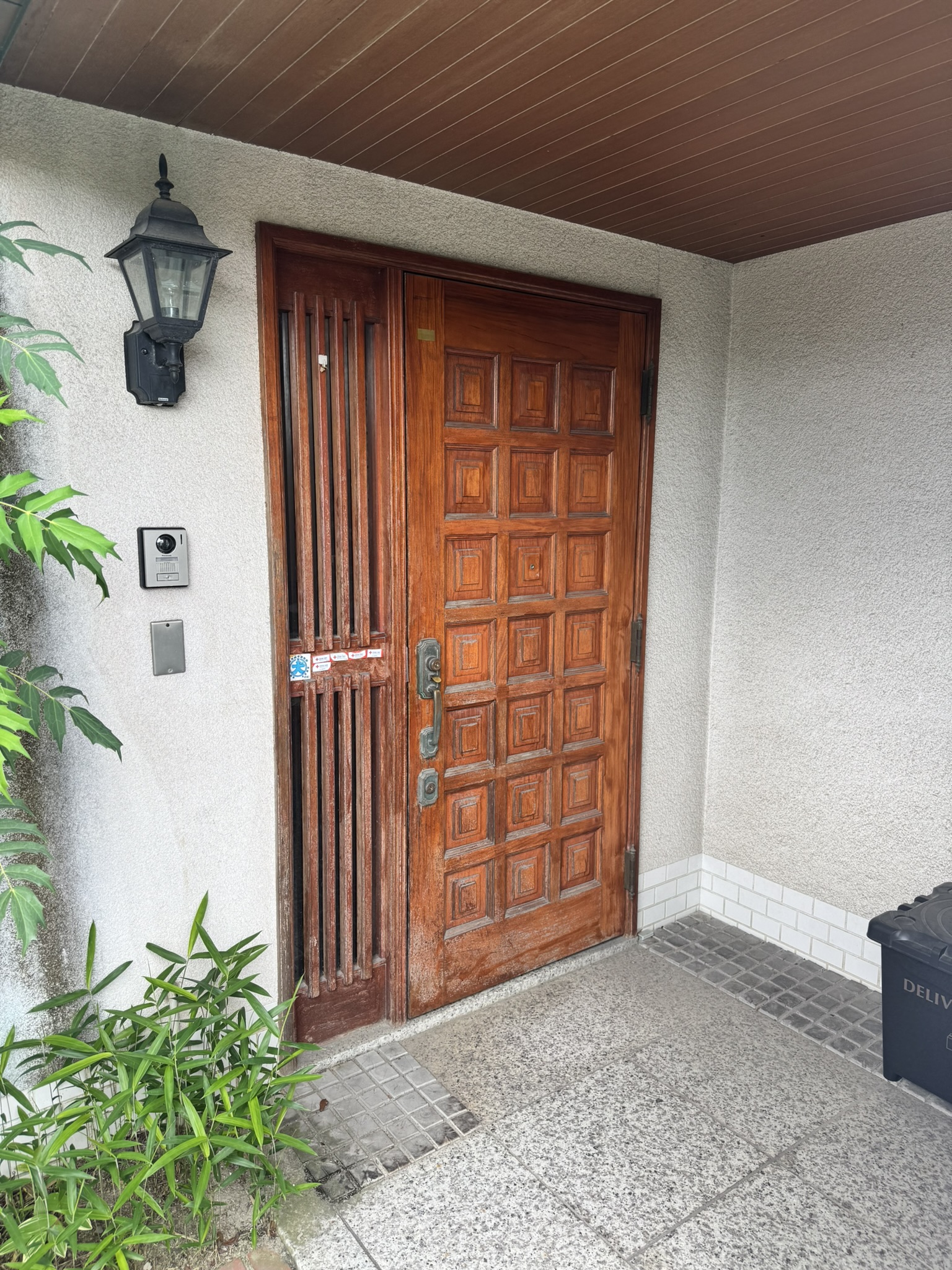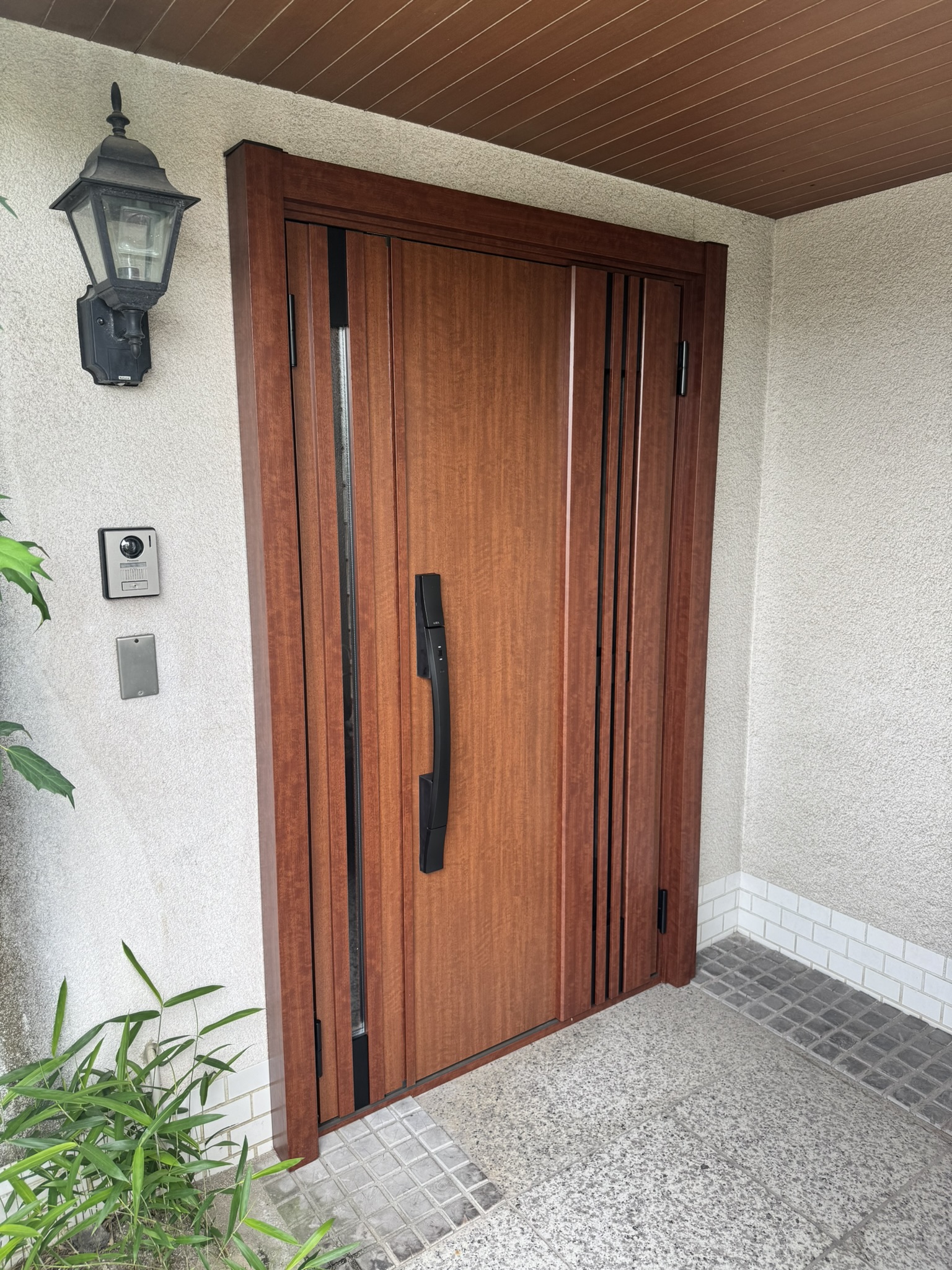 港区 玄関ドア工事 2025.06.24 玄関ドアカバー工法LIXIL リシェント3断熱仕様(K4) M83型 ポートマホガニー扉表層老朽化のため、再塗装のご相談を受け、打ち合わせとご提案を重ねていくなかで、扉取替に形となりました。美装のみならず、カードキー、タッチキー(スマホ)による快適性能も追加され、彩風タイプの為、風通しも安全かつ、快適に使用できるようになりました。beforeafter