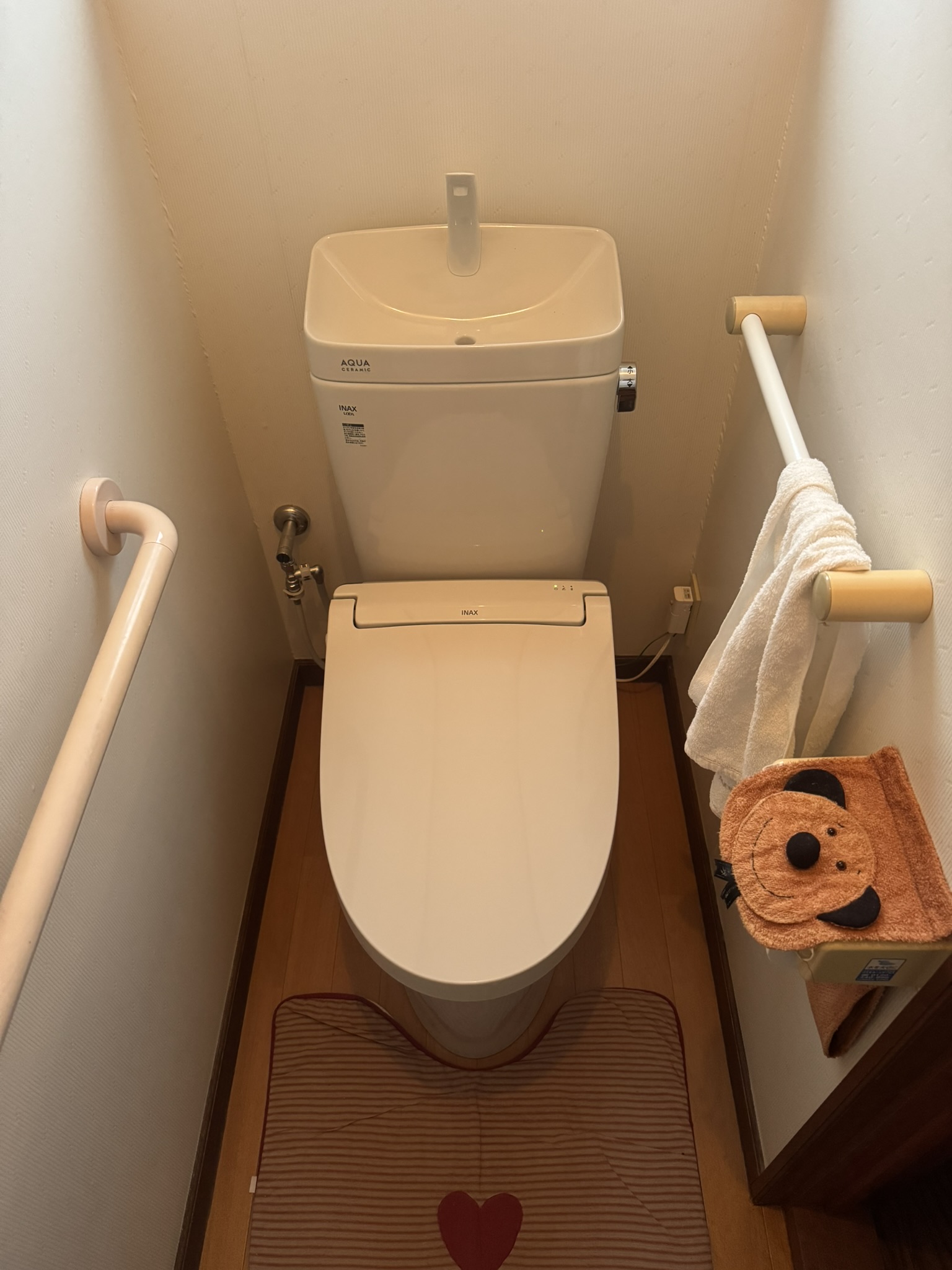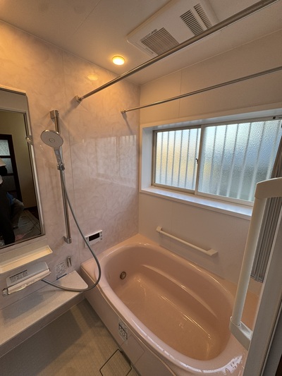 豊田市 浴室等水廻り・内装工事 2025.12.15 ユニットバス:LIXIL リデア1316サイズ Mタイプ1Fトイレ:LIXIL アメージュ便器・NewPASSO EA222Fトイレ:LIXIL アメージュ便器・KAシリーズ KA31給湯器:Rinnai RUF-E200FSAW・MBC-240V(A)LDK・玄関廊下フローリング:ダイケン デラアート2P ラスティックペカン柄お孫さんの出産に伴い、築三十年の戸建て住宅を玄関~LDKの内装工事、在来浴室~追い焚き新設及びユニットバスへの取替、その他諸々を施工させて頂きました。施工前(浴室設置前・LDKクロス貼替後) 施工後